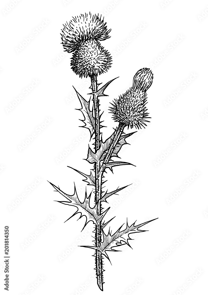 . "A patch of thistles, the national flower of Scotland, seen in a mountainous Scottish Highland landscape near Inchnadamph on Loch Assynt It has also been introduced at mid-latitudes across much of North America